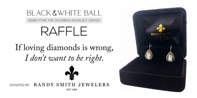 | This raffle is for a set of beautiful diamond earrings. This pair of rustic cut diamonds, surrounded by small round diamonds, is set in sterling silver with gold plating, and are generously donated by Randy Smith Jewelers.\r\n\r\nAll proceeds from this raffle go to supporting the Black & White Ball, ensuring that The Children�s Advocacy Center will continue to fulfill a vital need in this region: providing support services for children and mentally challenged adult victims of sexual abuse, physical abuse, human trafficking, or the witnessing of violent crimes. All of the necessary steps - forensic interviews, medical exams, and victim support services - are conducted in one child-friendly environment in collaboration with local agencies and officials. Since its opening in 2006, the Children�s Advocacy Center has yielded tangible results in mitigating the strain and trauma of those in Northeast Louisiana who have suffered through no fault of their own. An investment in The Children�s Advocacy Center is an investment of hope for these victims and their families.\r\n\r\nRaffle sales will end at 9:00pm, Saturday, September 14th, 2019. Raffle winner will be drawn on Saturday, September 14th, 2019. You need not be present to win. Raffle winner will be notified via e-mail and phone call. Coordination of raffle delivery will be settled upon once winner is announced. | |